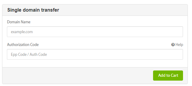 Once you've found the right option, you'll be asked to confirm which domain you want to transfer in, and provide its authorization code: