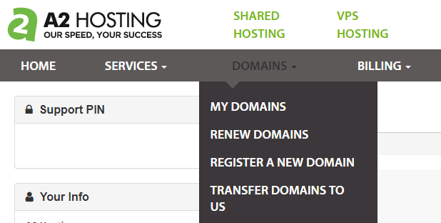 Log into your new host or registrar now, and look for an option to transfer your domain. It should be somewhere on your dashboard or management panel (if you're moving to our service, you'll find it under the Domains tab):