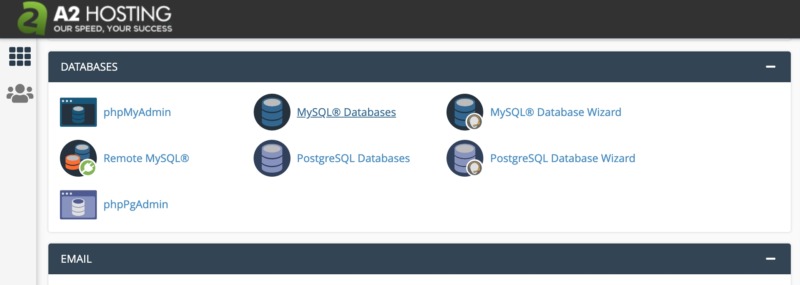 At some point you may want to review all the databases you’ve created. You can either use cPanel’s MySQL Databases tool, or phpMyAdmin. Both of these tools are accessible from the main cPanel dashboard.