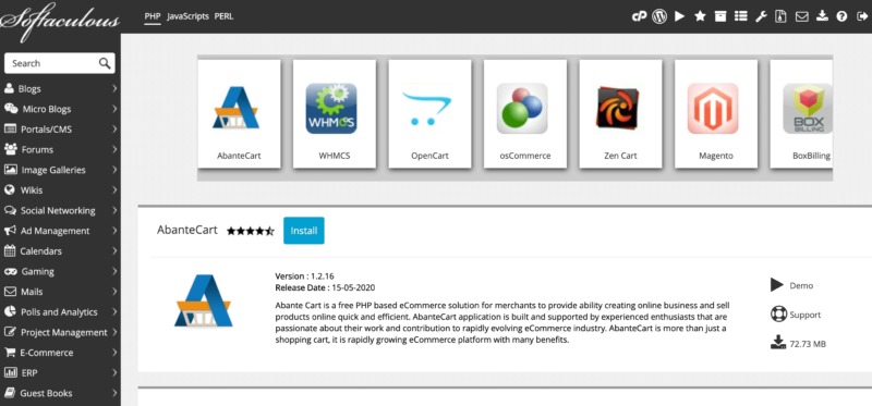 Using Softaculous, you can explore categories of web applications ranging from social networking, to advert management, e-commerce, and customer support. You can often install these applications with a single click. Even if additional configuration is required, Softaculous will prompt you to enter the necessary information via its graphical user interface.