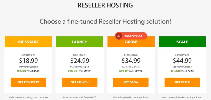 As a hosting reseller, you’ll purchase a hosting package from an established provider. You’ll pay a fixed fee for this server space, then resell these services to your own clients for a profit.